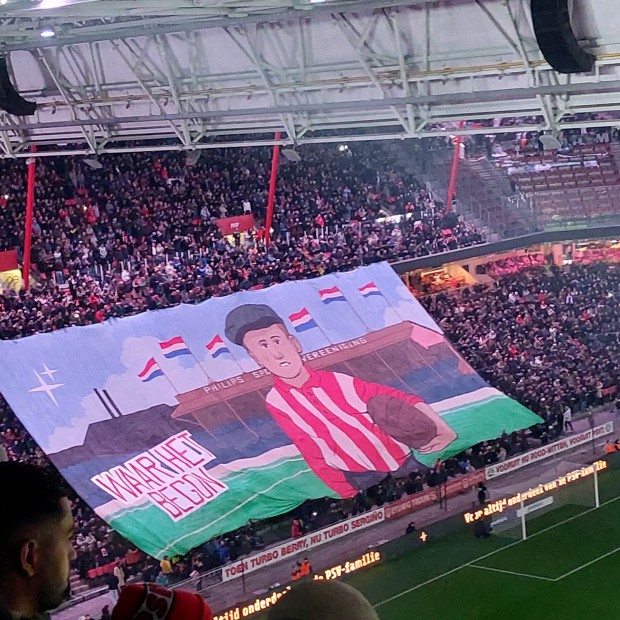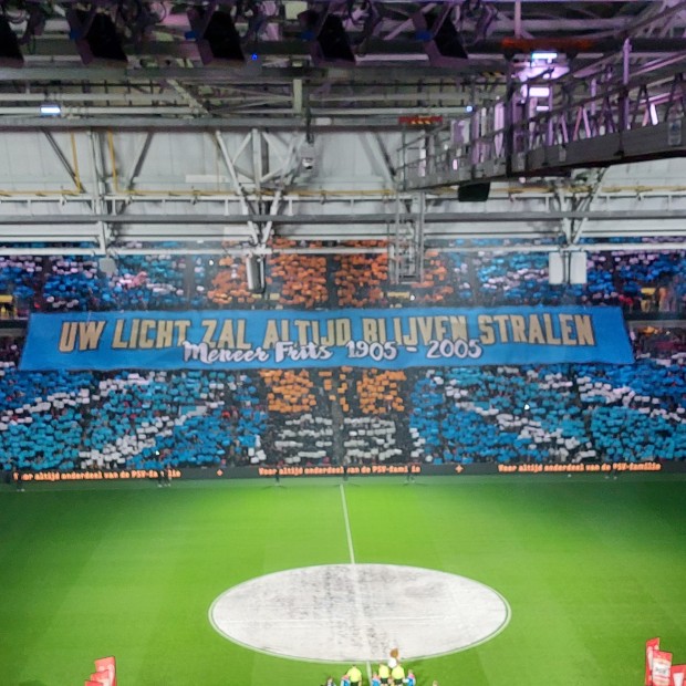 Nog voordat het eerste fluitsignaal klinkt, is het Philips Stadion muisstil en tegelijkertijd oorverdovend. In december staat PSV traditiegetrouw stil bij de mensen die niet meer onder ons zijn binnen de PSV-familie. Op de tribunes verschijnen grote TIFO’s ter ere van Frits Philips en op de middencirkel ligt een groot zwart zeil, gevuld met honderden namen van supporters die gemist worden. Dan volgt een minuut applaus. Geen stilte, maar geluid. Het stadion klapt en herdenkt.