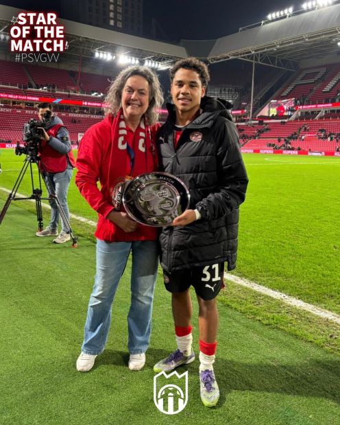Gistergavond is Noah Fernandez door de supporters gekozen tot Star of the Match bij de bekerwedstrijd PSV - GVVV. Susanne mocht de schaal aan hem overhandigen.