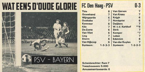 De Eindhovenaren beginnen met een thuiswedstrijd zonder de dan nog steeds geschorste Ruud Gullit. Het wordt uiteindelijk 0-2 voor Bayern München door twee doelpunten van Reinhold Mathy. De returnwedstrijd in München is PSV niet bij machte om het eerdere verlies uit de thuiswedstrijd te herstellen in Duitsland bij Bayern München. De wedstrijd eindigde in een 0-0 gelijkspel en zo was PSV al direct Europees in de eerste ronde uitgeschakeld. Ruud Gullit zou uiteindelijk twee seizoenen bij PSV verblijven en twee keer landskampioen met PSV worden. Verder zou hij uitgroeien tot de absolute sterspeler bij PSV en na twee seizoenen voor dan een top transferbedrag van 17 miljoen gulden naar het Italiaanse AC Milan vertrekken. Een fantastische Ruud Gullit bij PSV die jammerlijk door een zwaar bestrafte rode kaart zich Europees niet had kunnen etaleren voor PSV.